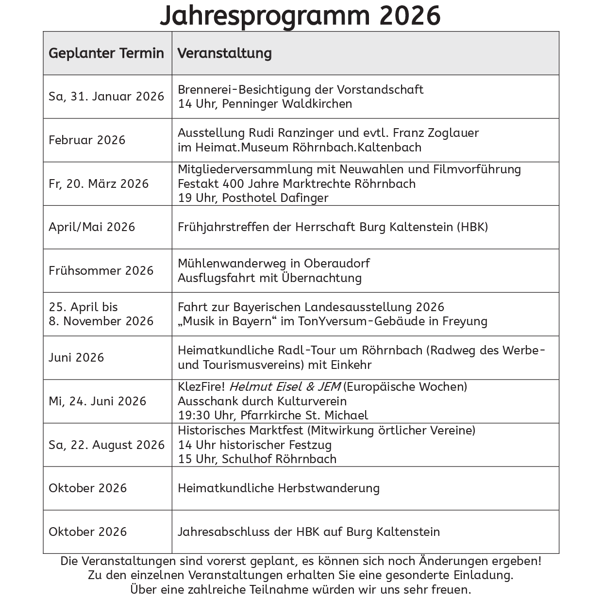 Herzlich willkommen beim Kulturverein Röhrnbach!